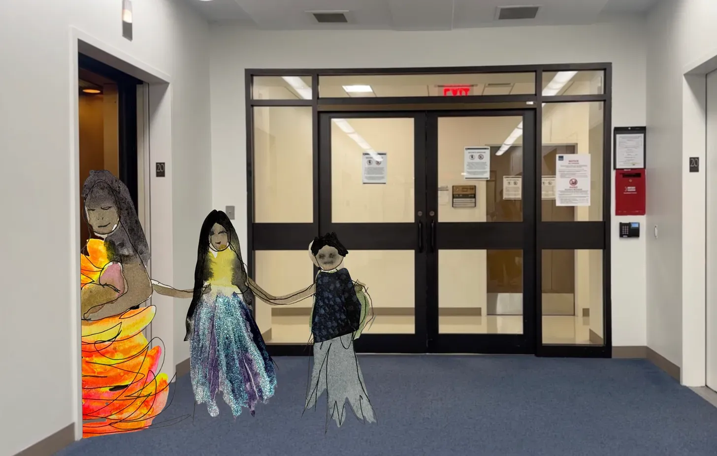 Of course I hadn’t thought of that. I apologized, shrugged, said I hoped she could make do. She tipped the lid of sugar into her coffee, rotated the cup, and thanked me for my trouble. She sat down and sighed. By now it was around 11 a.m. Marie chatted with some women sitting nearby, helping one interpret a court document written in English. I checked the hallways for ICE. Not a soul. The mood in the waiting room was getting looser. An extremely polite girl, around 10, watched over her three-year old sister as she scribbled on pieces of paper. The child’s exuberance as she showed adults her drawings made us feel human.